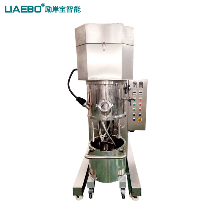 行星混合攪拌機分為行星攪拌系統、行星罩、刮壁器、反應釜、液壓升降系統、液壓出料系統、真空系統以及機架等構成。是在消化吸收國內外先進技術的基礎上加以創新改進開發出的一種新型、高效混合裝置。